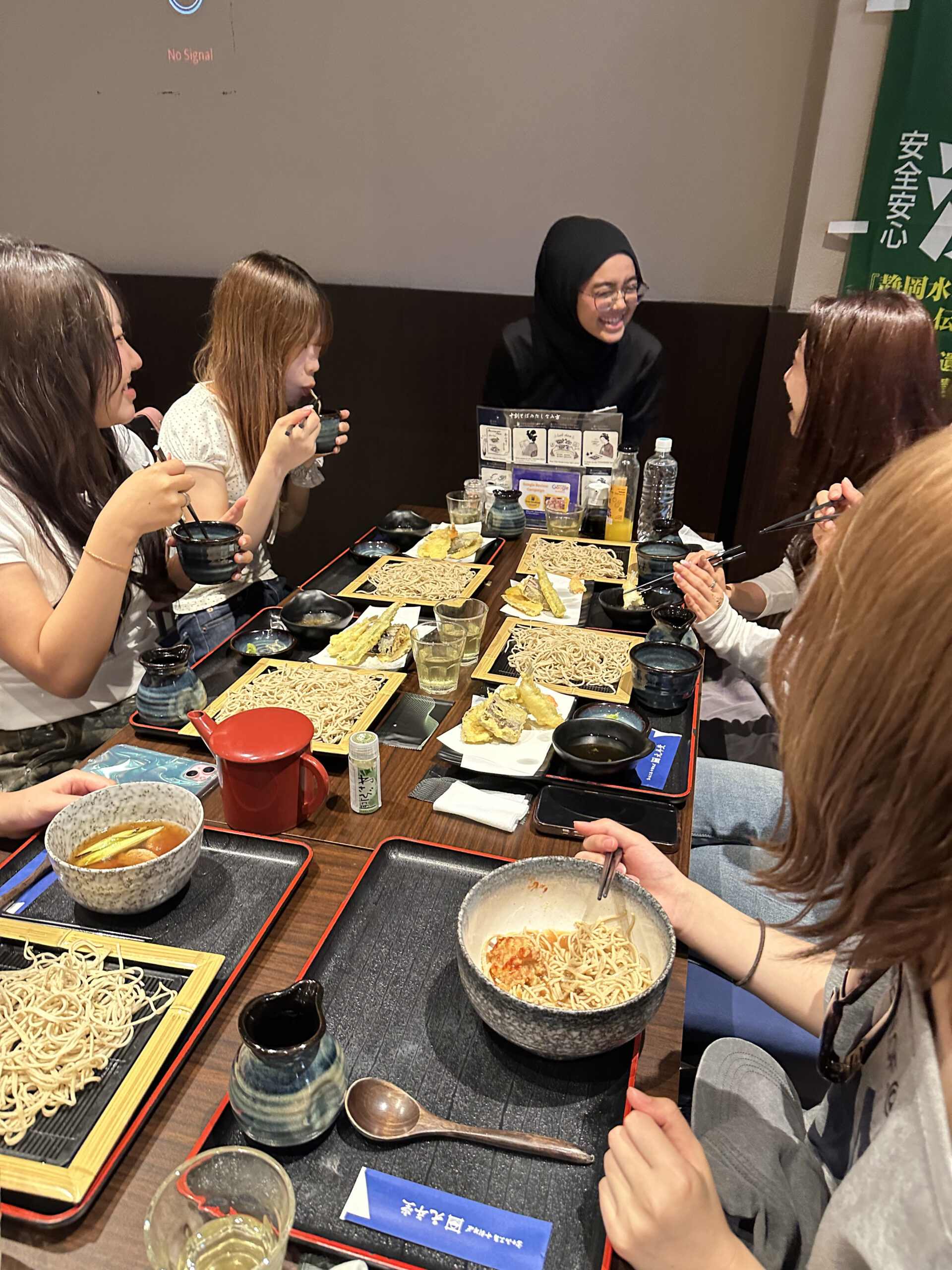 ここでの体験は非常に大きかったようです。多くの学生がアンケートで「日本で食べる蕎麦と味が変わらないことに驚いた」「使えない食材(豚やアルコール由来の調味料など)が多い中で、ここまで美味しくできる工夫に感動した」と答えていました。